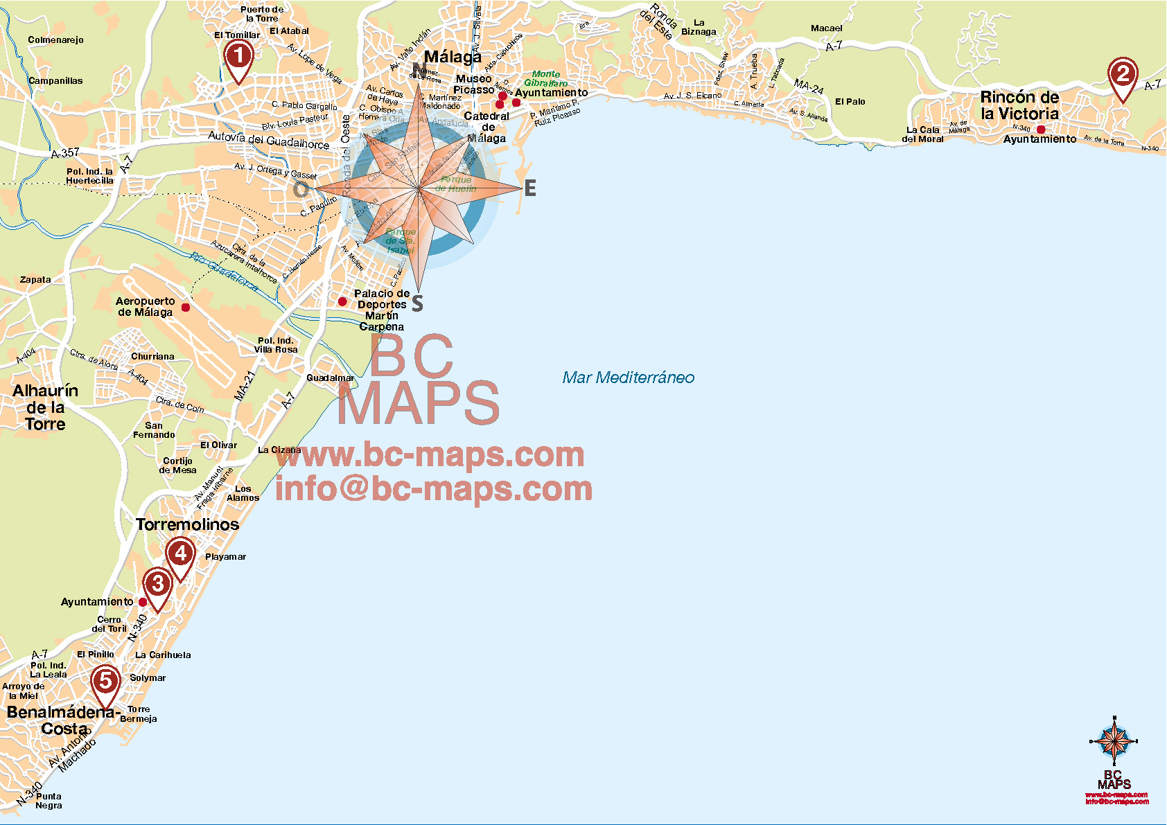 Realizamos para la agencia LA FABRICA DEL BOCETO de Álcala de Henares una mapa vectorial en illustrator de las poblaciones de Málaga, El Rincón de la Victoria, Torremolinos y Benalmádena para realizar un folleto para la venta de las promociones inmobiliarias de la imobiliaria SOLVIA del grupo Banco de Sabadell