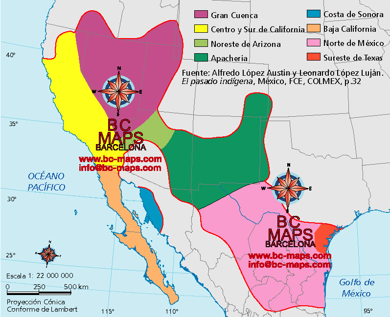Aridamérica mapa para libro de texto de Historia de México, mapa vectorial Illustrator eps ai editable por capas