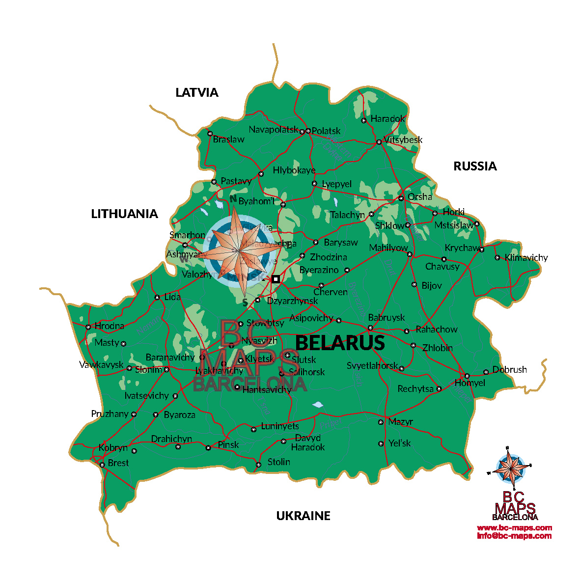 Podemos crear cualquier tipo de mapa de Bielorrusia, mapas de ciudades, mapas de regiones …etc. Un ejemplo de lo que podemos hacer sería este mapa :