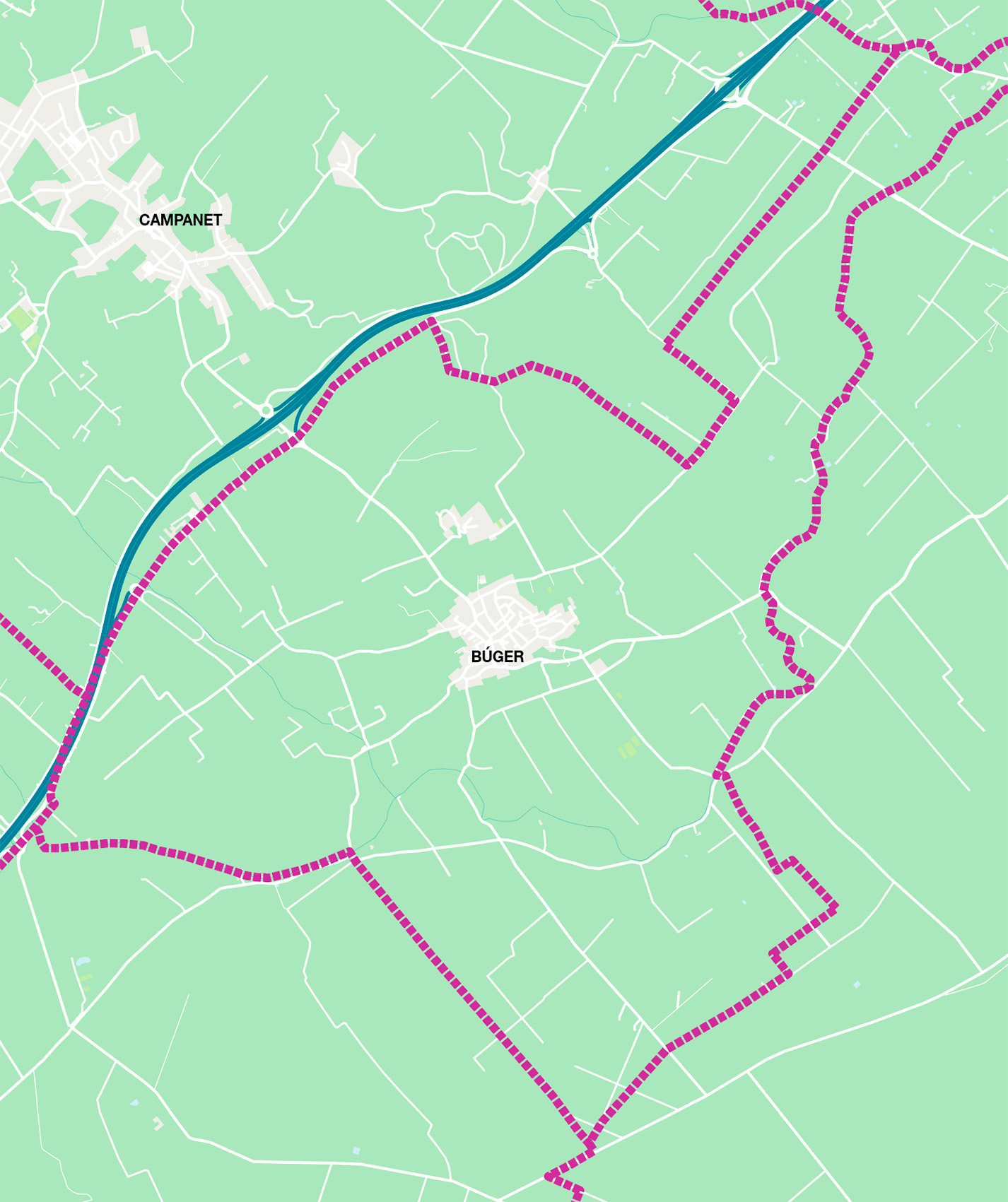 Mapas vectoriales editables estructurados con capas del municipio de Búger