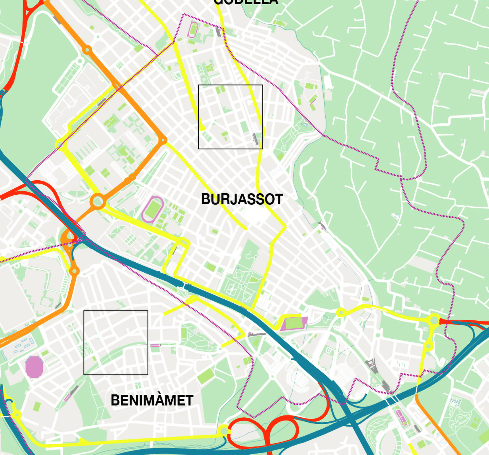 Burjassot mapa vectorial illustrator, podemos crear cualquier tipo de mapa del municipio, planos parciales, planos generales, planos de detalle, …etc.