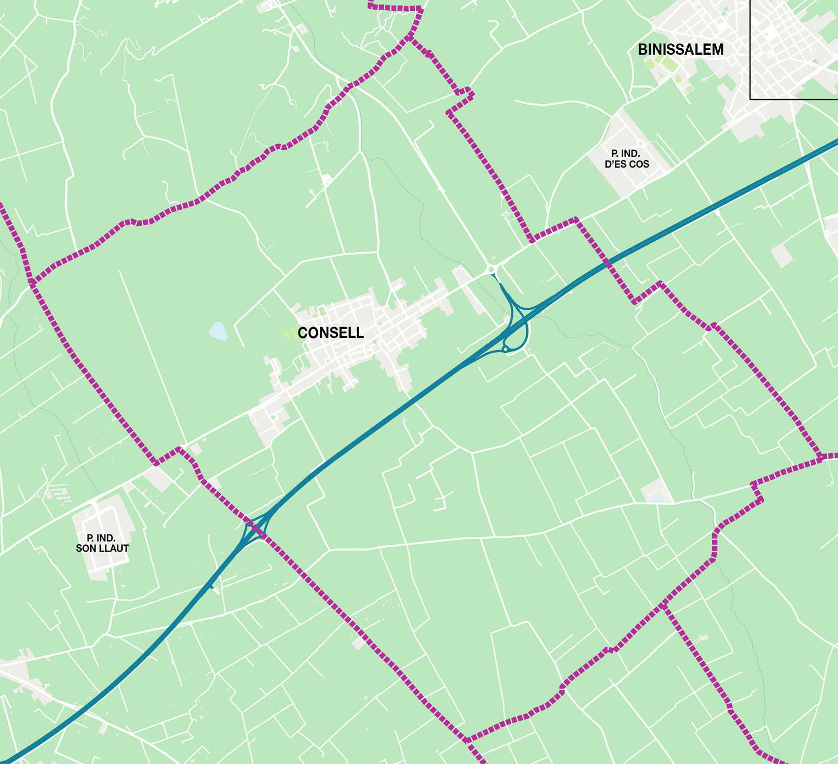 Mapas vectoriales editables estructurados con capas del municipio de Consell Mallorca, planos vectoriales de ciudades de la isla