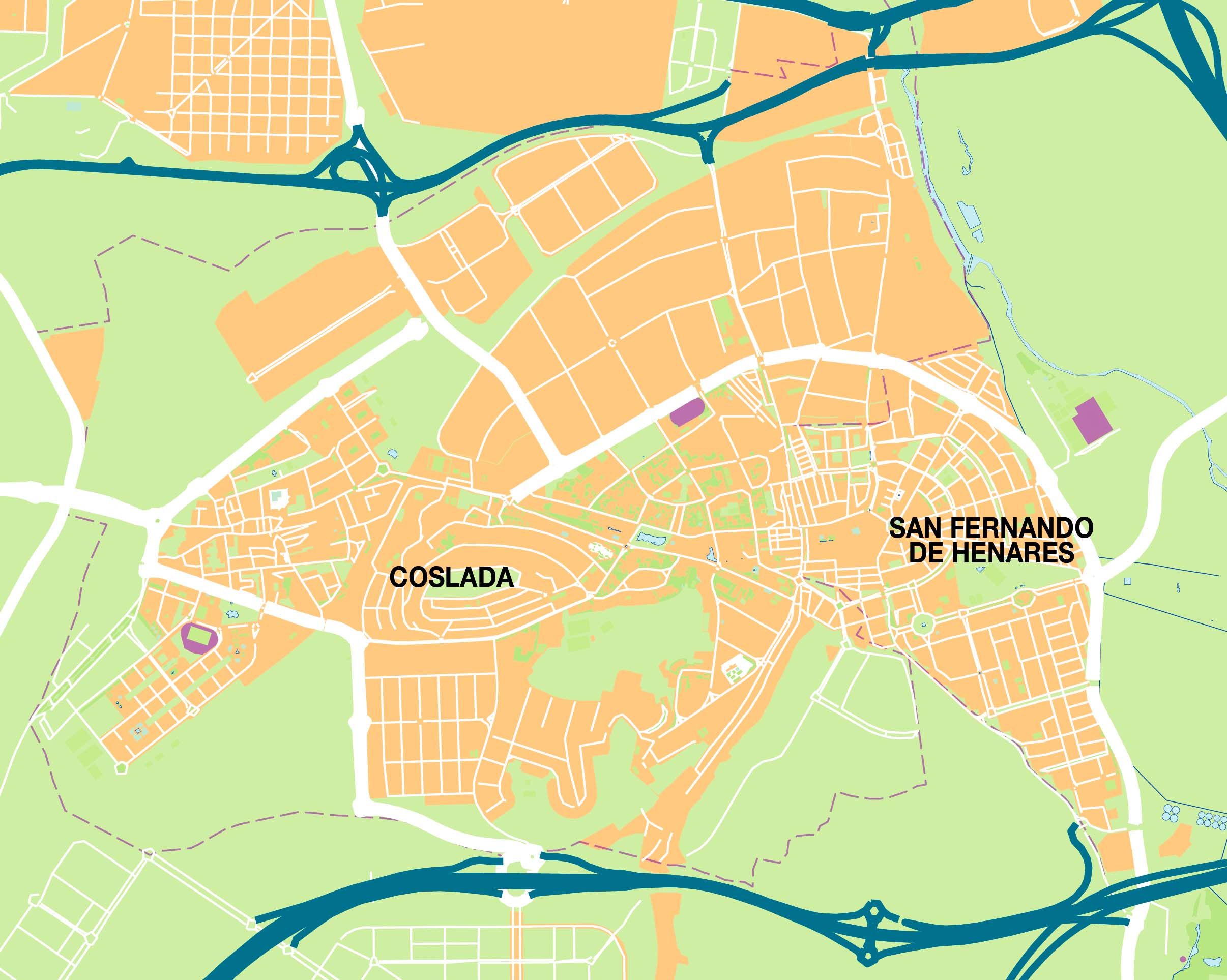 Un mapa vectorial en illustrator eps de Coslada es un archivo digital que representa gráficamente la geografía, la infraestructura y otros elementos geoespaciales de la ciudad en forma de vectores.