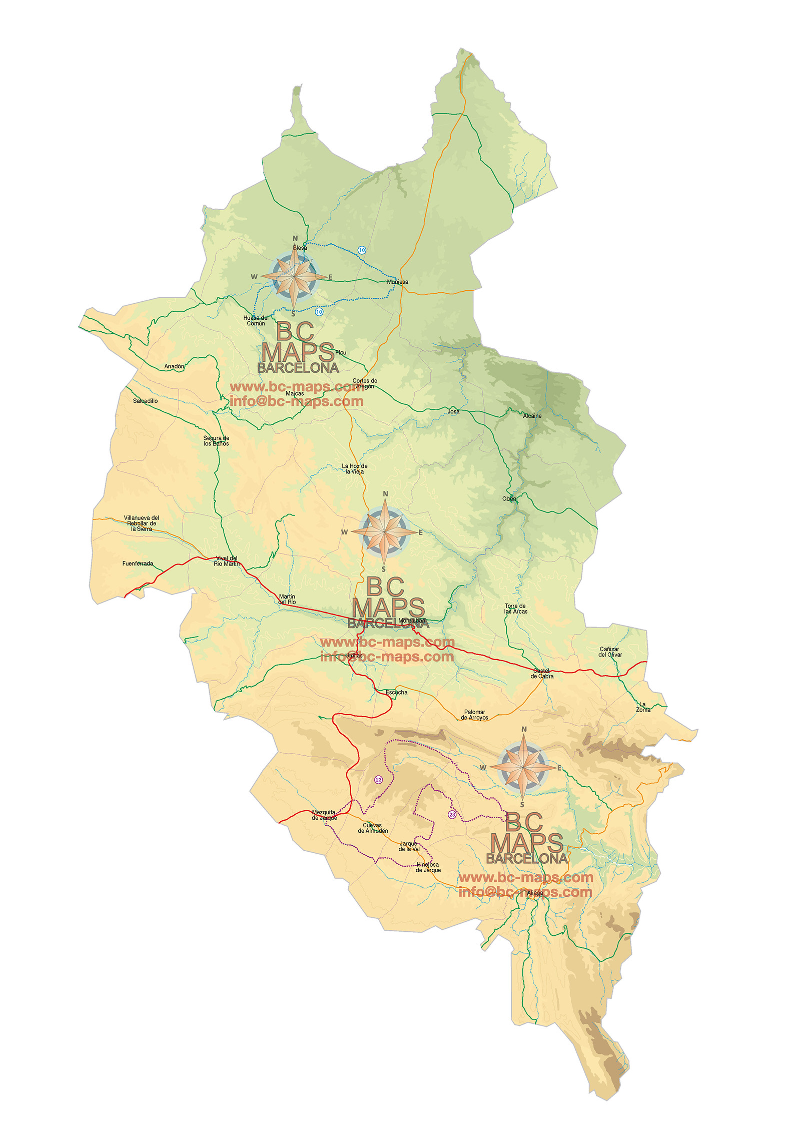 Mapas vectoriales editables estructurados por capas de los comarcas de Teruel