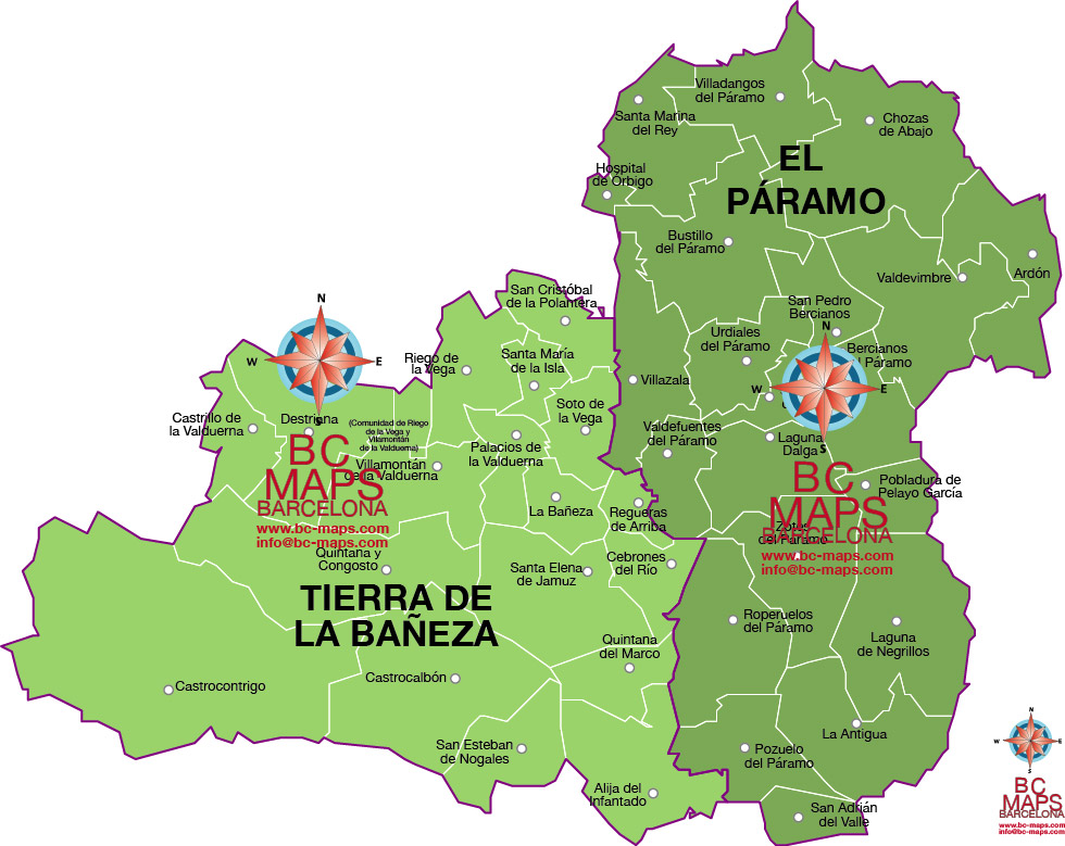 Municipios Comarcas La Bañeza El Paramos mapa vectorial illustrator eps
