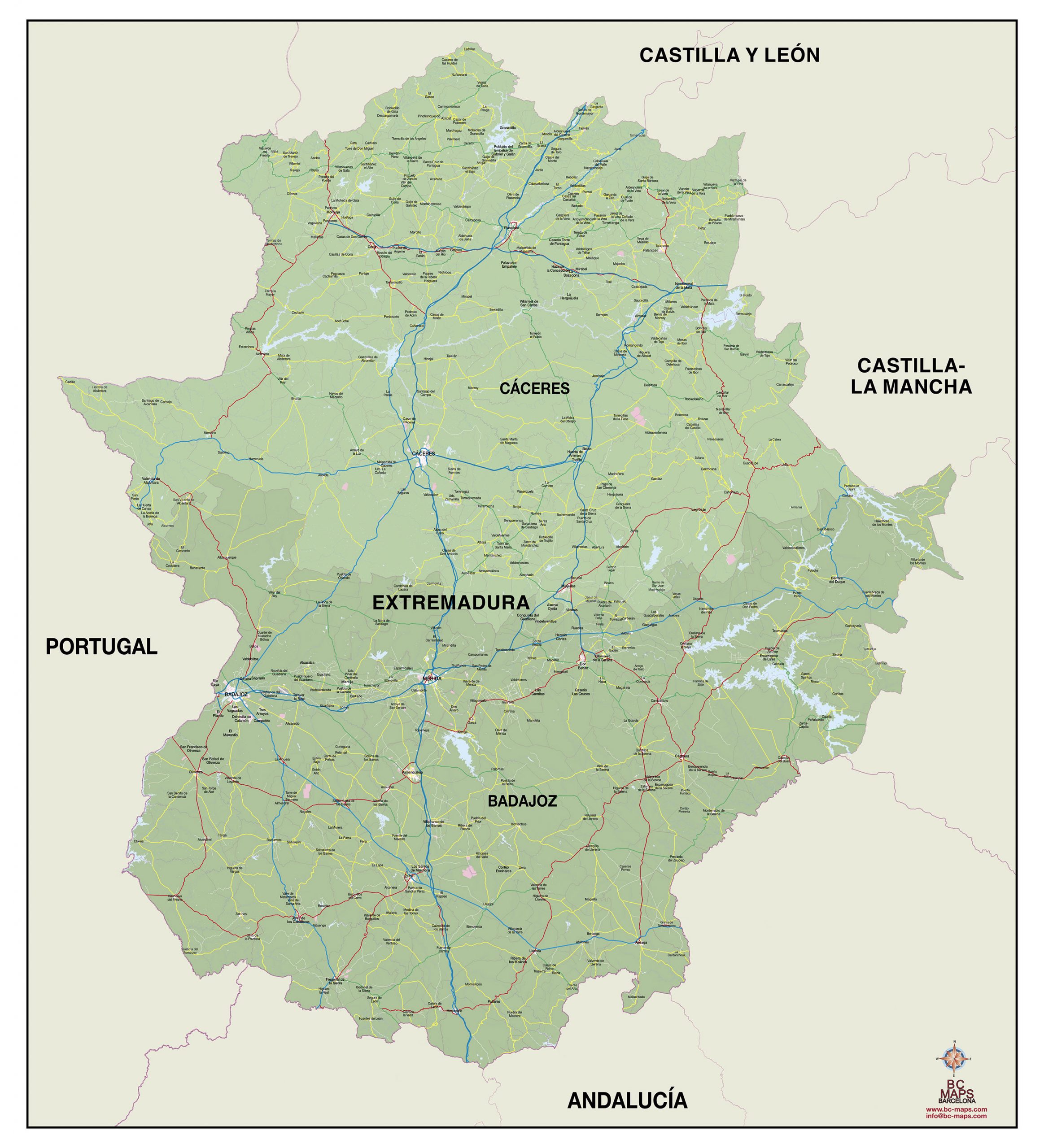 Planos editables eps illustrator de ciudades y de carreteras de Extremadura