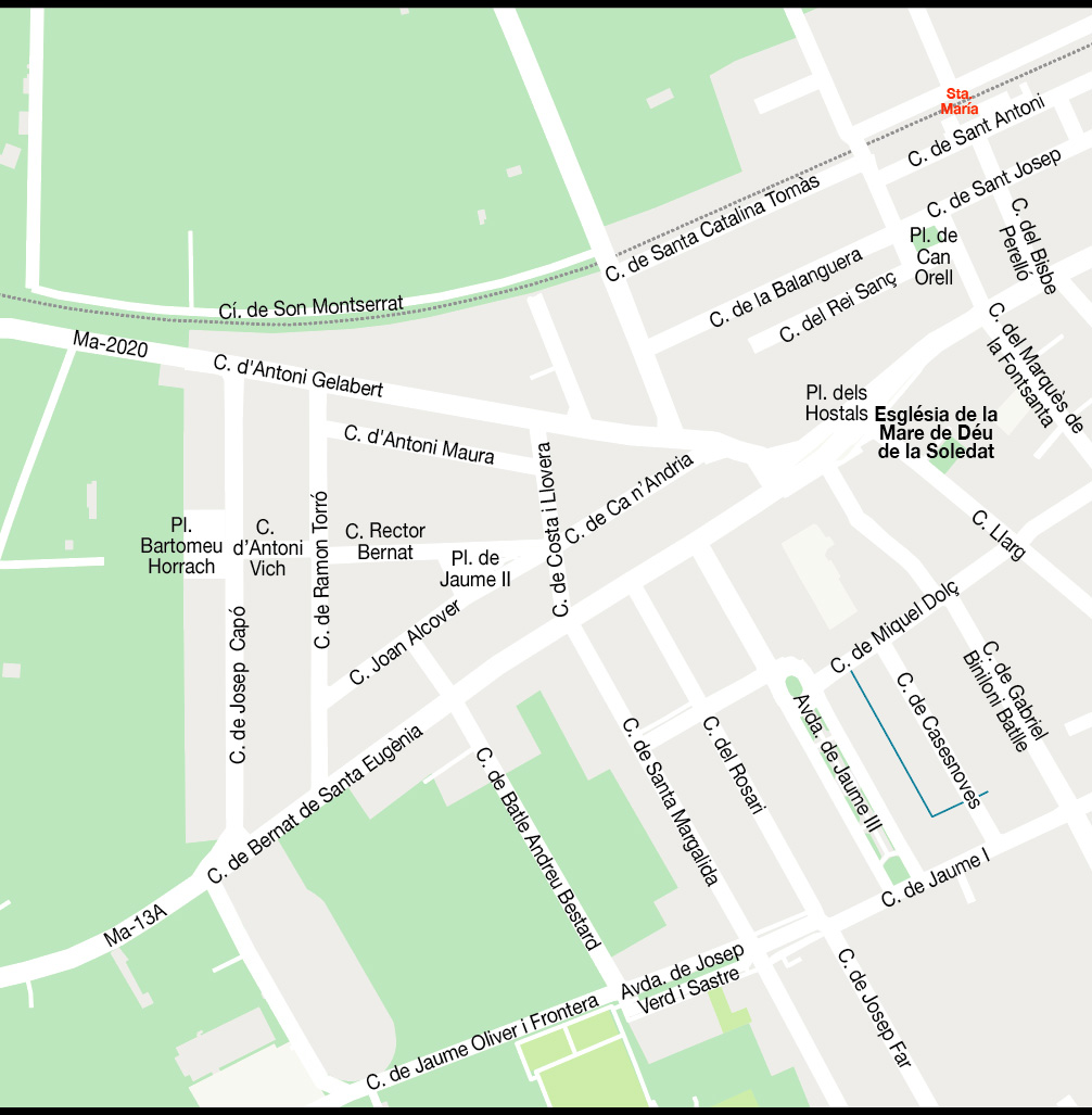 Podemos crear cualquier tipo de mapa del municipio de Santa Maria del Camí planos parciales, planos generales, planos de detalle, …etc.