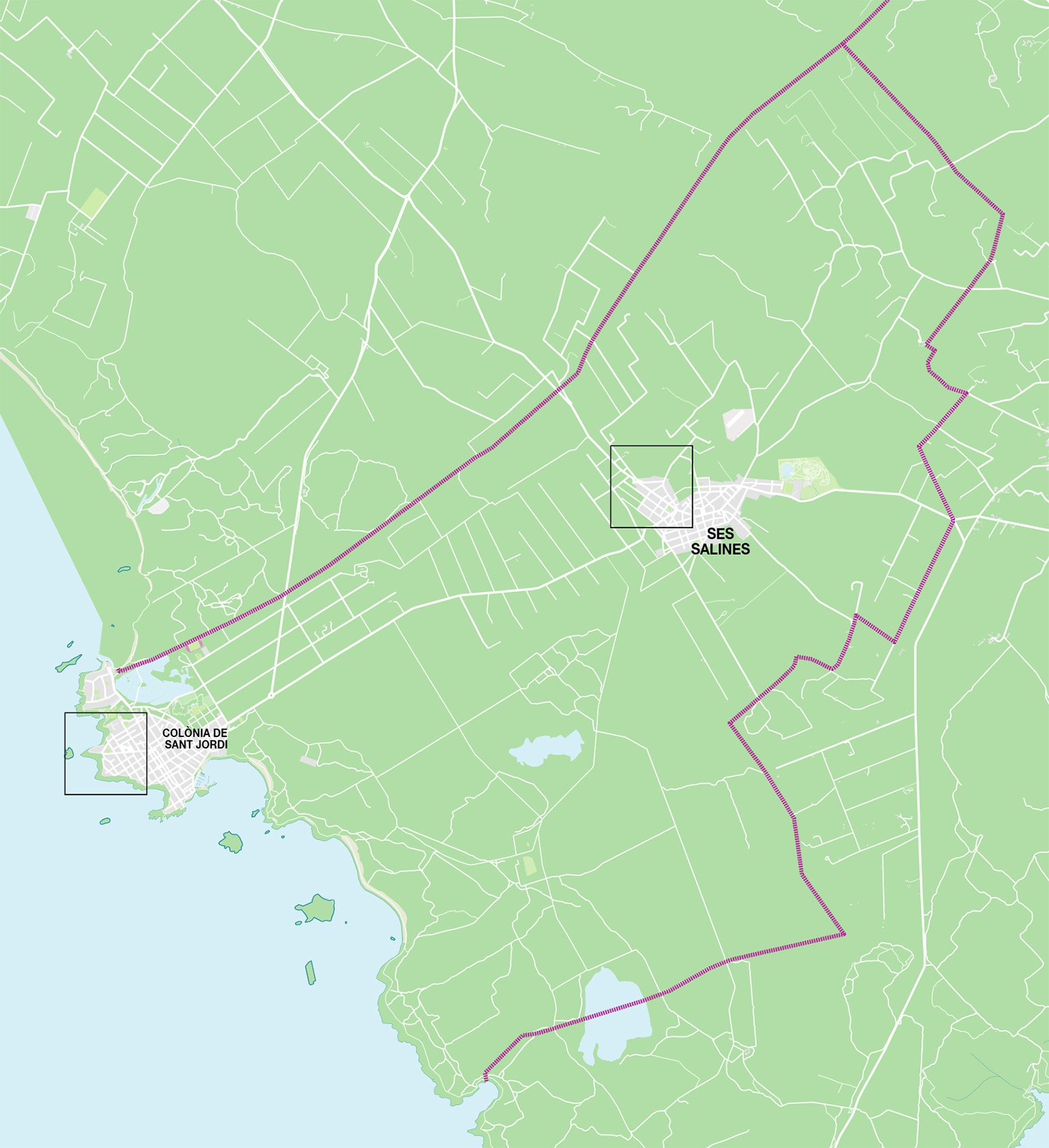 Mapas vectoriales editables estructurados con capas del municipio de ses Salines